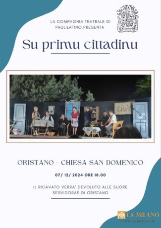 Oristano: Sabato 7 dicembre spettacolo teatrale in limba ”Su primu cittadinu”, fondi in beneficenza alle Suore Servidoras